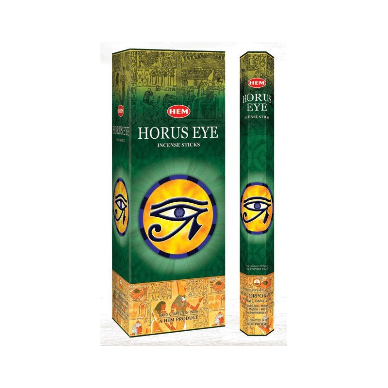 Het Heilige oog van Horus (God van de hemel) is het symbool voor voorspellingen en de wijsheid die men kan bereiken dankzij het zinnelijke beschouwen van de wereld. Het is tevens het symbool van de eeuwige waakzaamheid, het belichaamt de contante aanwezigheid van de goden die alles zien. Deze wierook beschermd je voor de boze blik en mensen die ons ongunstig beïnvloeden