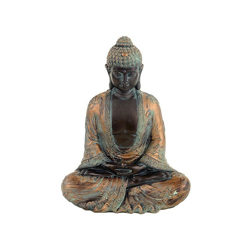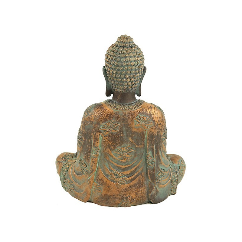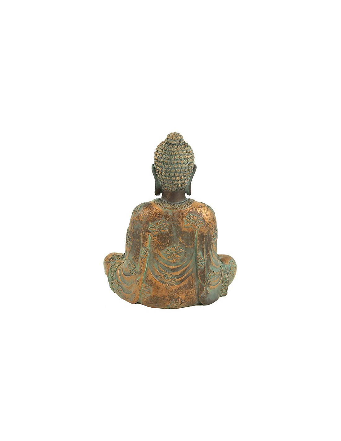 Een prachtige zittende Japanse Boeddha met de Mudra van evenwicht in meditatie. Op het gewaad zijn lotusbloemen verwerkt. De lotusbloem staat voor transformatie van onwetendheid naar alwetendheid.
