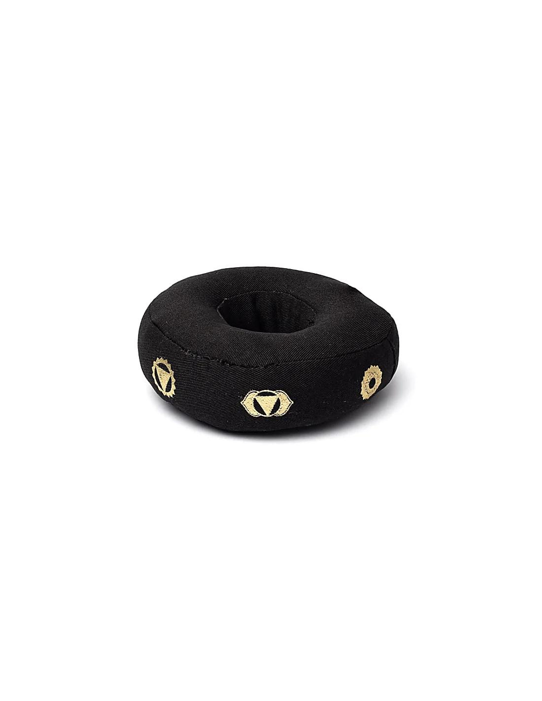 Dit stijlvolle, ringvormige kussen is speciaal ontworpen om je klankschaal stabiel te laten rusten, zodat de klank zuiver en vrij kan resoneren zonder storende bijgeluiden van de ondergrond. De zachte vulling zorgt voor optimale ondersteuning, terwijl de goudkleurige chakra-symbolen een verfijnde en spirituele uitstraling toevoegen.