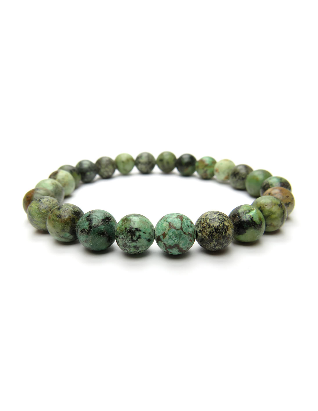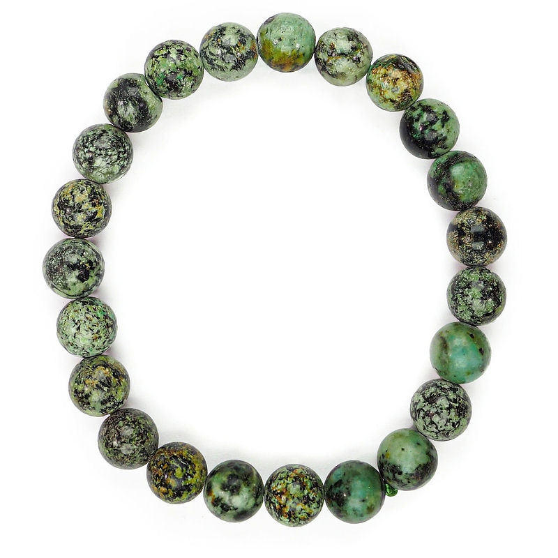 De African turkoois bevordert de spirituele afstemming op communicatie met de fysieke en spirituele werelden. Het versterkt de intuïtie en is geschikt bij meditatie. Het biedt troost aan de geest en welzijn aan het lichaam en wordt naar verluidt als talisman gebruikt als er ontrouw dreigt. Het is goed voor de lever, nieren en werkt pijnstillend.