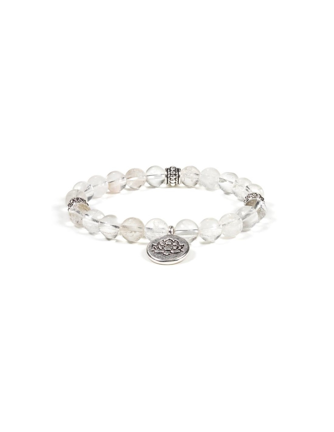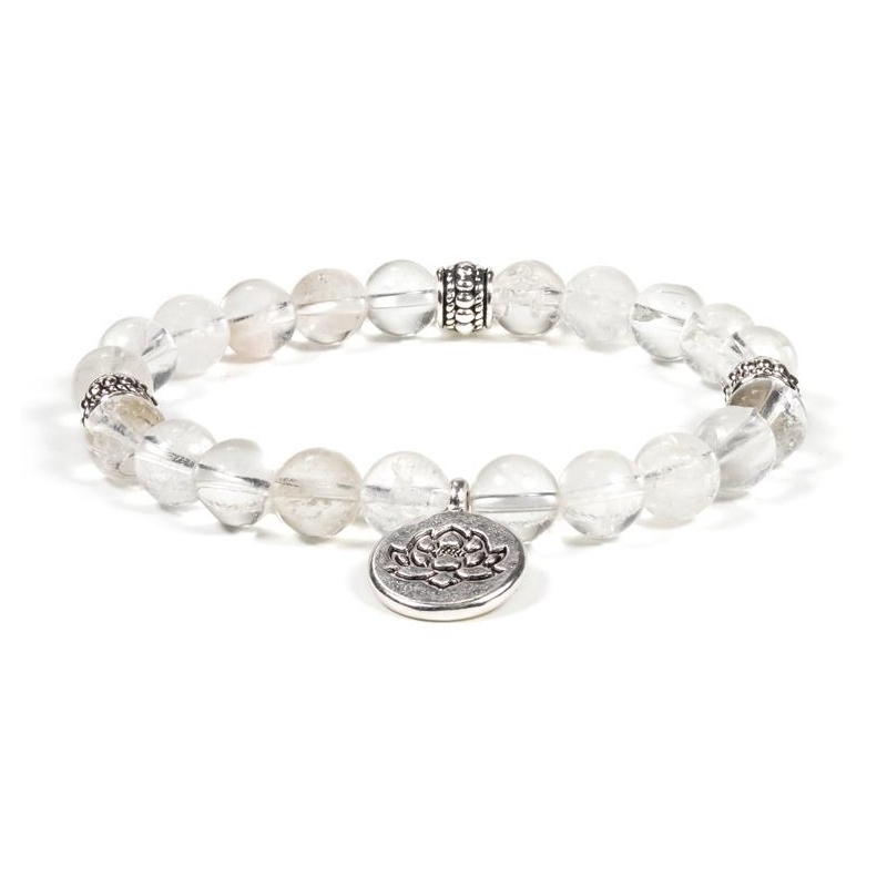 Bergkristal en Amethist armband met Bloem des levens 8mmEen prachtig armband met bergkristal en amethist en een bloem des levens bedeltje. Afmeting armband: 18.5cm