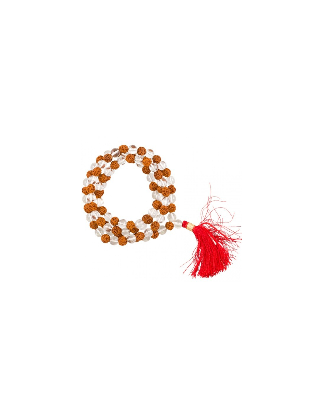 Malaketting bergkristal /rudraksha AA 108 kralen