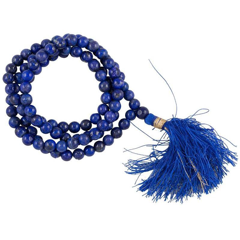 Het kralensnoer wordt hoofdzakelijk gebruikt om mantra's te tellen die gereciteerd worden. Het heeft dus feitelijk dezelfde functie als een rozenkrans (Katholiek bidsnoer). Deze mala kralen zijn gemaakt van Lapis Lazuli (half)edelstenen en zijn voor velerlei doeleinden geschikt, voor het tellen van allerlei soorten mantra's of andere gebeden.