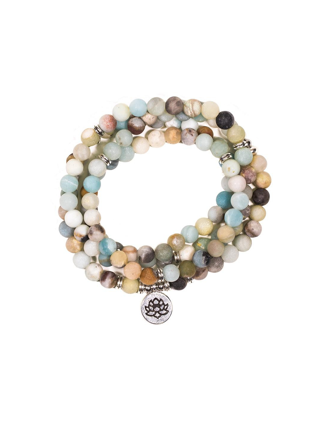 Het kralensnoer wordt hoofdzakelijk gebruikt om mantra's te tellen die gereciteerd worden. Het heeft dus feitelijk dezelfde functie als een rozenkrans (Katholiek bidsnoer). Deze mala kralen zijn gemaakt van Amazoniet (half)edelstenen en zijn voor velerlei doeleinden geschikt, voor het tellen van allerlei soorten mantra's of andere gebeden.
