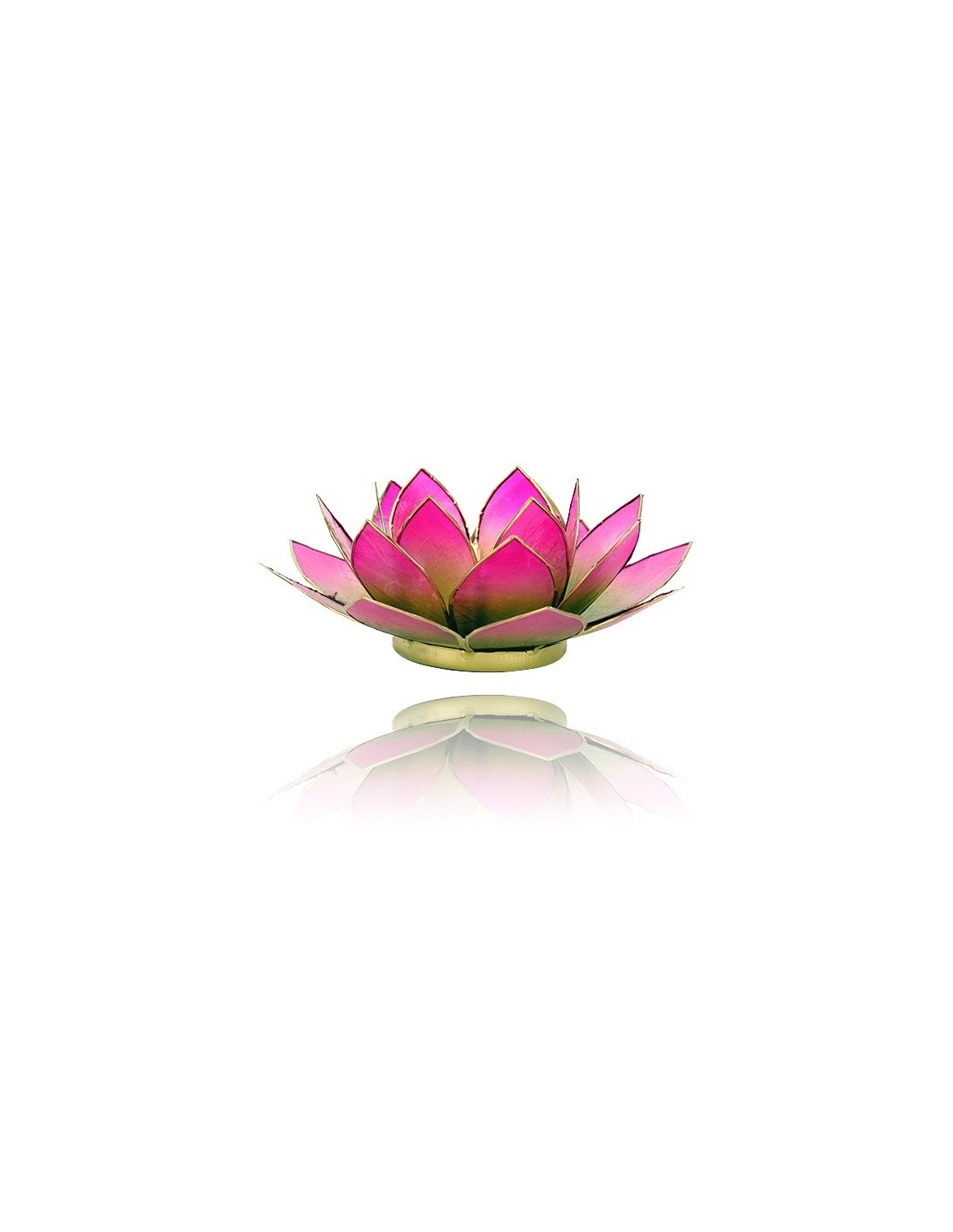 Prachtige grote Lotus sfeerlicht gemaakt van Capiz schelp in de kleuren roze en groen. De Lotus is het symbool van duisternis naar licht, van onwetendheid naar weten. De lotus staat ook symbool voor de 7 energiecentra in het menselijk lichaam, de chakra's.