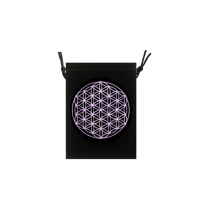 Een fluweel tarotbuidel om je kostbare tarot en orakelkaarten te beschermen. Met aan de voorzijde het symbool van de flower of life.