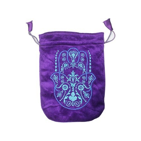 Een fluweel tarotbuidel om je kostbare tarot en orakelkaarten te beschermen. Met aan de voorzijde de hand van Fatima