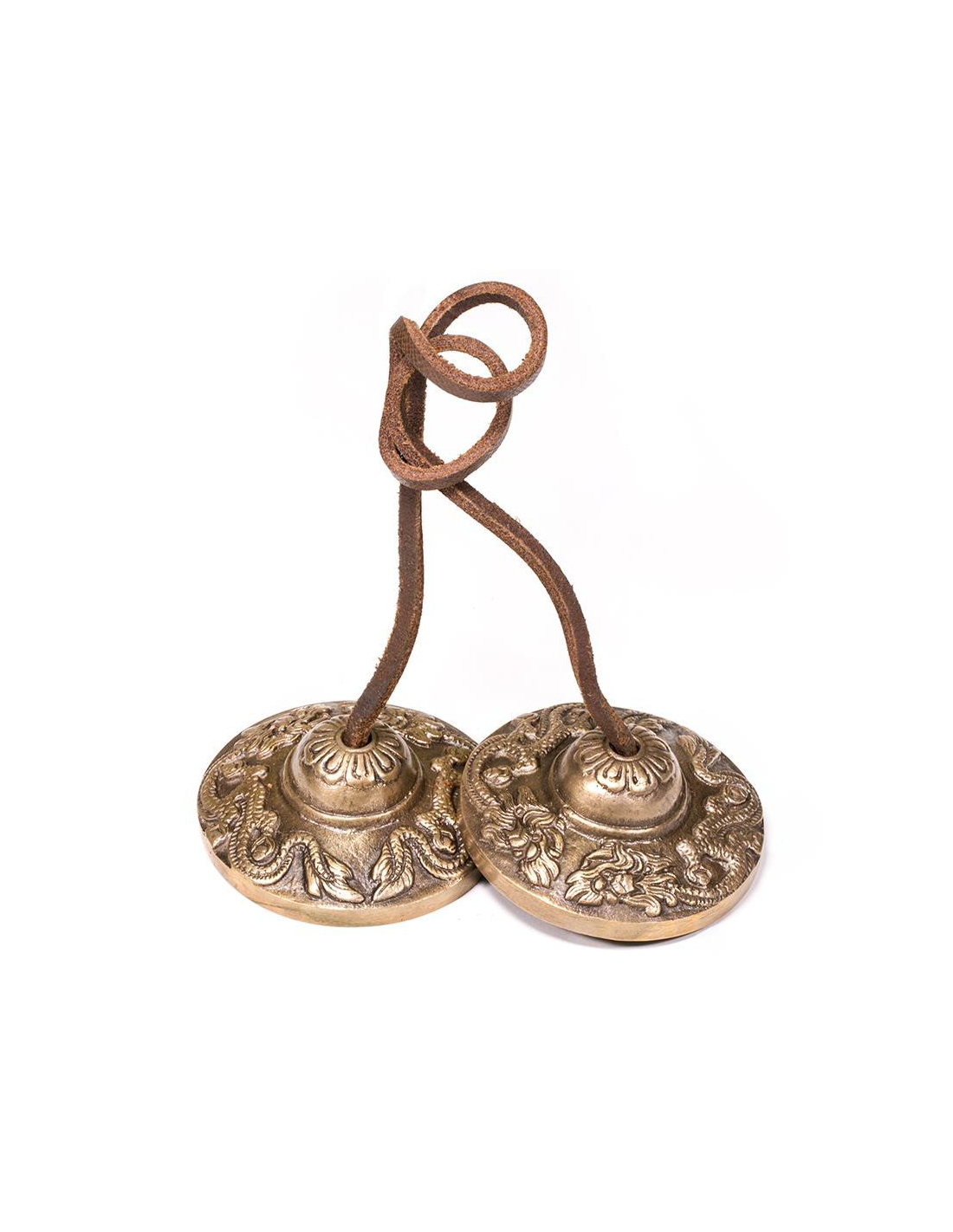 Je kunt de twee schijfjes tegen elkaar aanslaan, om een prachtig heldere hoge toon te maken, die lang blijft hangen, de atmosfeer zuivert en een buitengewoon gevoel van stilte oproept. De sprankelende toon van een tingsha resoneert meteen in ons hart. Je kunt ze gebruiken om de aandacht weer te richten, om ons bewust te worden wie wij zijn en wat onze prioriteiten zijn in deze vaak turbulente schijnwereld. Als we ze naast elkaar hangen en ze dan tegen elkaar laten komen dan ontstaat er tussen die twee een prachtige, vibrerende klankgolf, terwijl ze een hoge geluidstrilling produceren – een indrukwekkende symfonie van diep doordringende klanken.