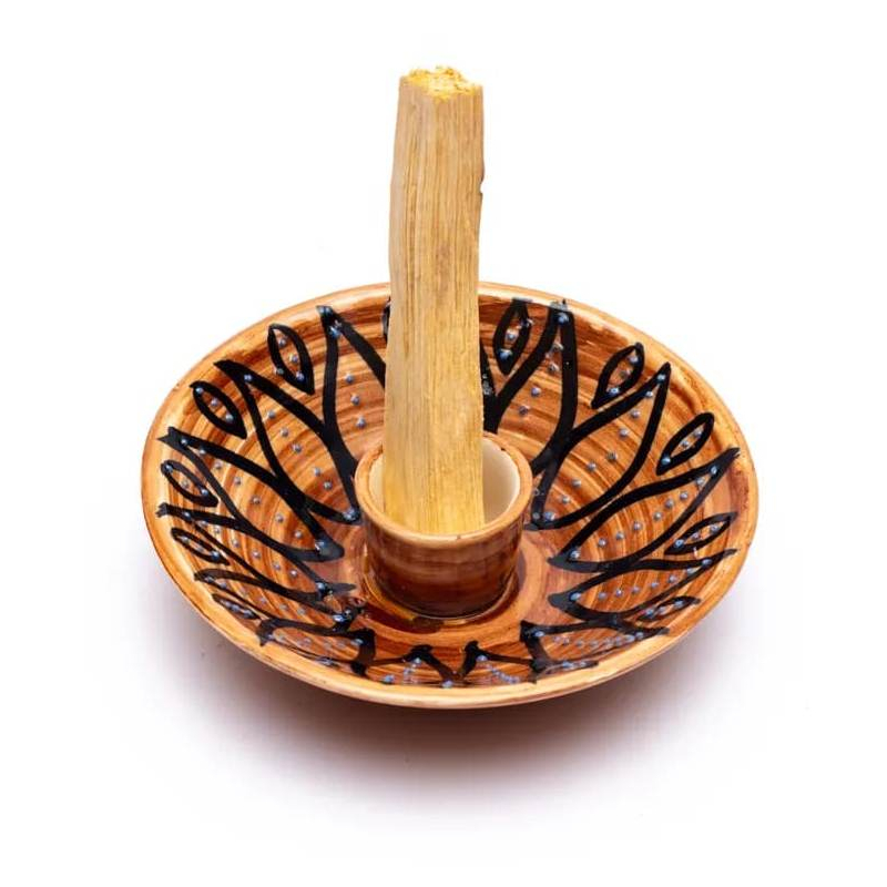 Een prachtige keramische wierookhouder, speciaal ontworpen voor het veilig branden van Palo Santo stokjes.