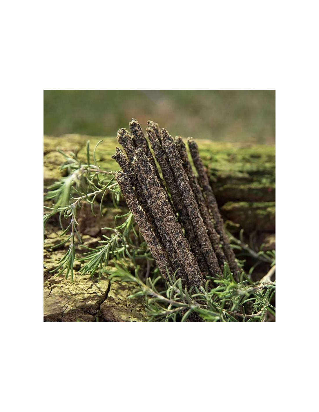 Gemaakt van gedroogde rue, gedroogde rozemarijnbladeren, natuurlijke frankincense hars en houtskool
